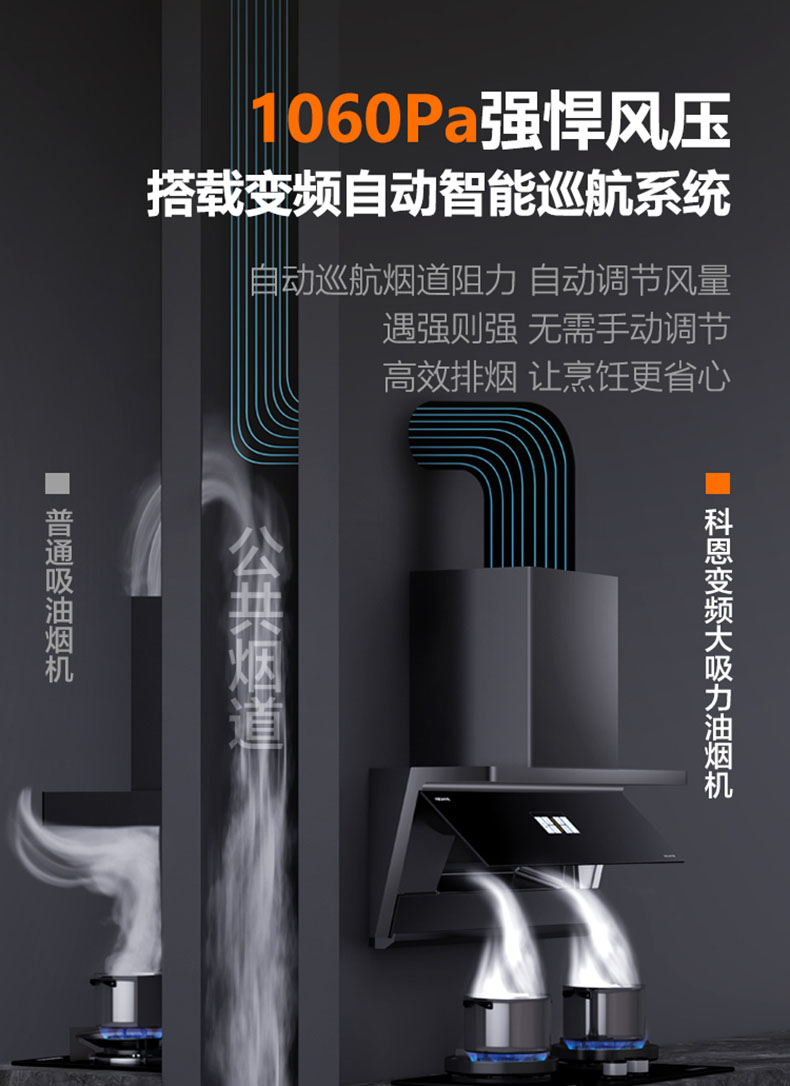 - 1060Pa強風(fēng)壓,高峰期烹飪排煙暢行無阻